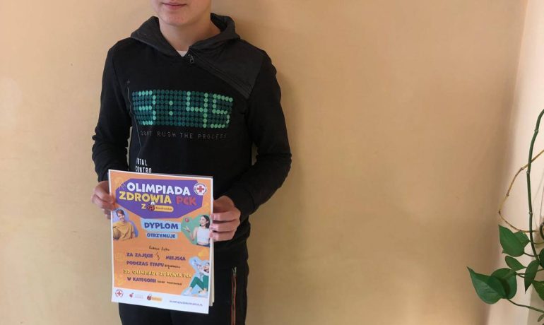Łukasz Lipka z kl. 8a zajął II miejsce w etapie rejonowym Olimpiady Zdrowia PCK z Biedronką. Gratulacje!
