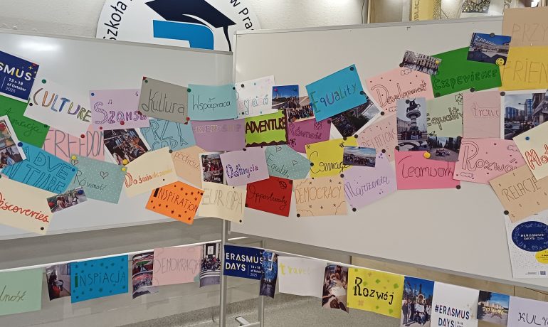 Stacja Erasmus już otwarta! Uczniowie naszej szkoły stworzyli wyjątkową wystawę poświęconą programowi Erasmus+! Przygotowali kolorowe karty z hasłami, które kojarzą im się z Erasmusem i...