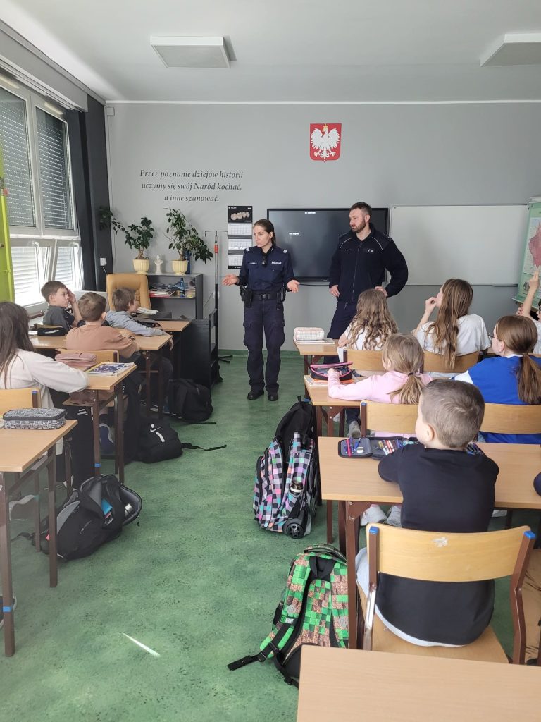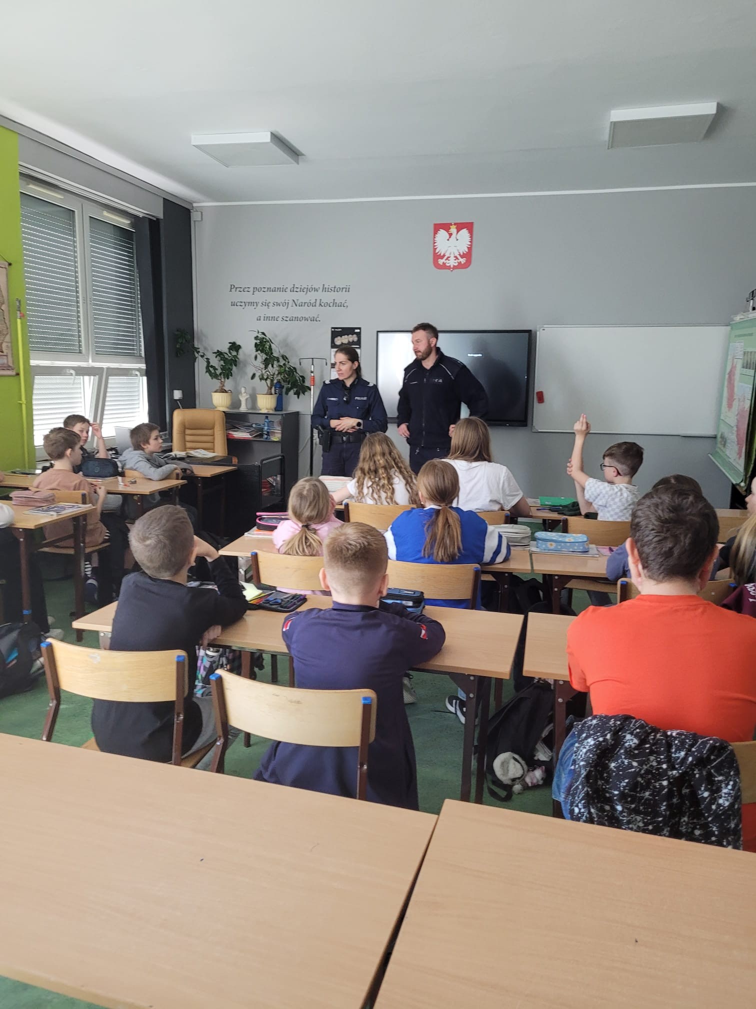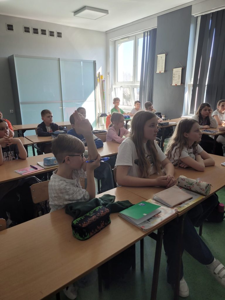 „Bezpieczeństwo uczniów. Przemoc i agresja występująca w środowisku szkolnym oraz Internecie i jej konsekwencje prawne” – to temat spotkania , które odbyło się 03.04.2025r. w klasie 4b.