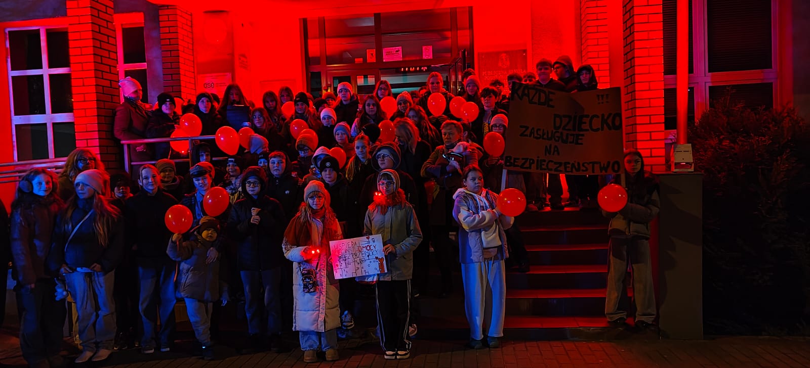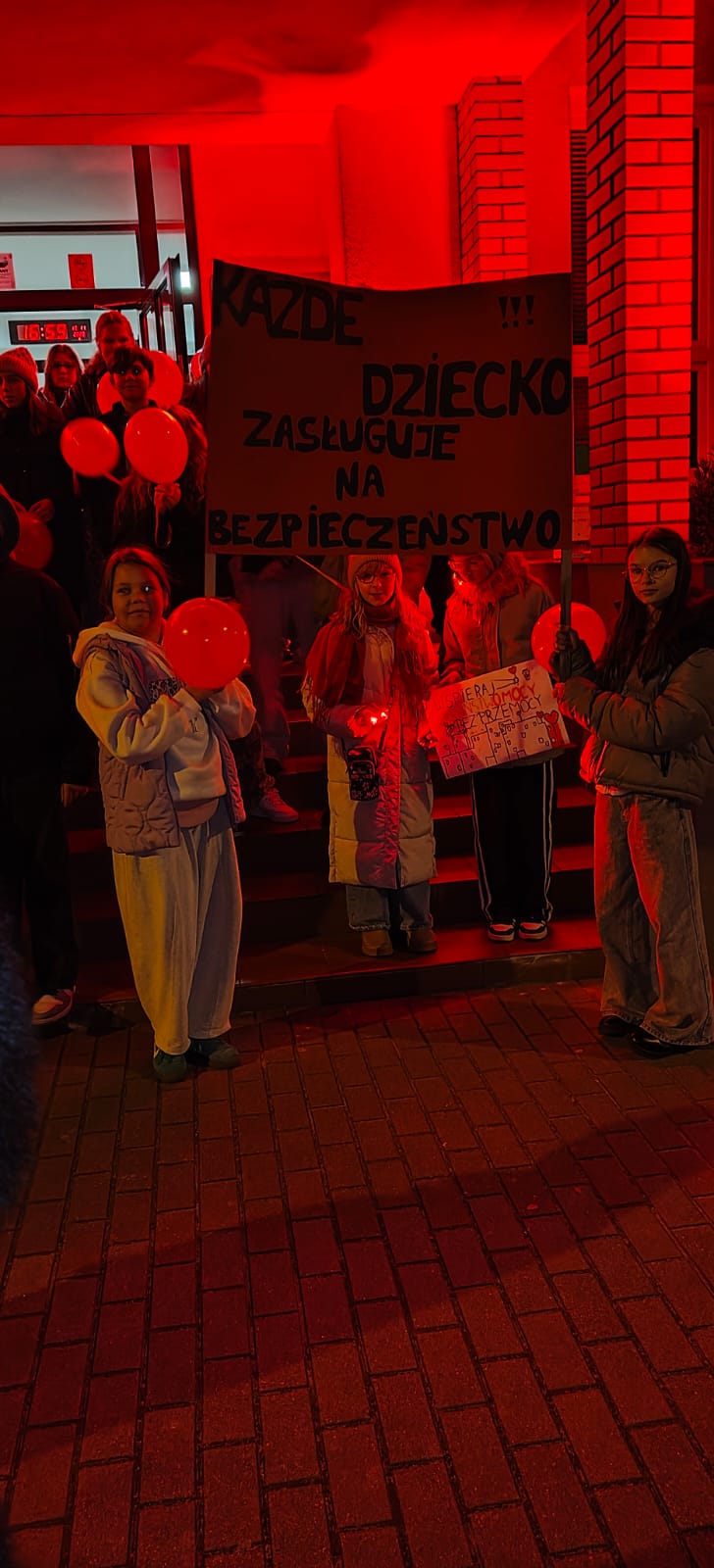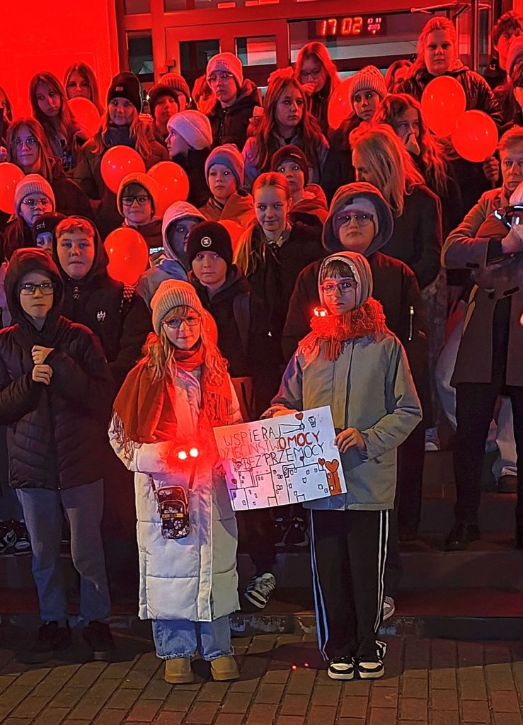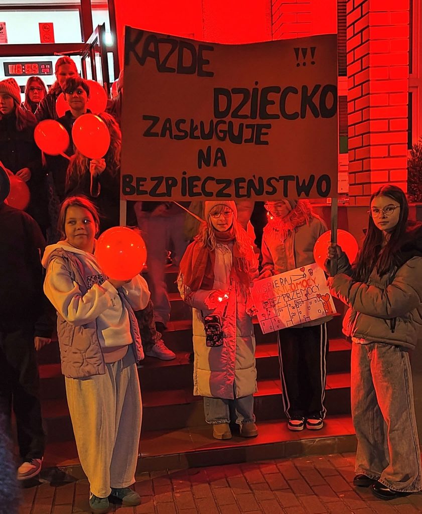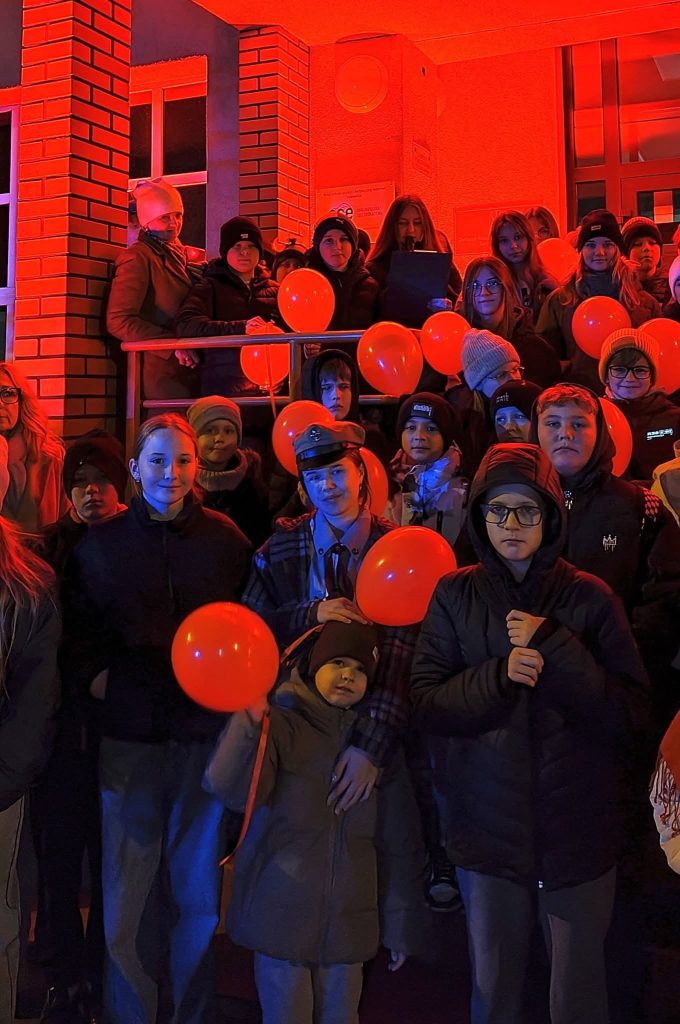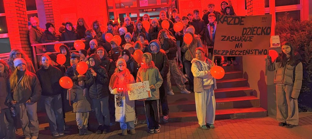 – Ta kampania to coroczna akcja, mobilizująca społeczeństwo do zapobiegania krzywdzeniu dzieci oraz podejmowania działań na rzecz bezpiecznego dzieciństwa – powiedziała Iga Szczecińska – uczennica VIII klasy SP 3, która odczytała też apel dzieci. „Chcemy, aby dorośli rozumieli, czym jest przemoc wobec dzieci, jakie są jej konsekwencje i dlaczego niegdy nie może być usprawiedliwiona /…/. Chcemy, by wszyscy wiedzieli, jak reagować na przemoc i reagowali, gdy podejrzewają, że dziecko jest krzywdzone/…/. Chcemy, by rodzice i opiekunowie wychowywali dzieci bez przemocy i zapewniali im bezpieczeństwo/…/. Dziś nasza szkoła świeci na czerwono, uczniowie trzymaja w rękach czerwone balony. To nasz symboliczny sprzeciw wobec krzywdzenia dzieci i apel o większą wrażliwość oraz ochronę najmłodszych.