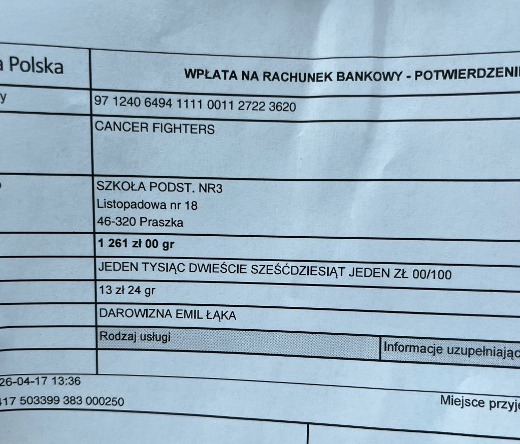 Dzięki Wam wydarzenie miało nie tylko słodki smak, ale przede wszystkim wielką wartość – pokazaliście, jak wiele dobra można wspólnie zdziałać. Z radością informujemy, że cały dochód z akcji został już dziś przekazany na leczenie brata naszego szkolnego kolegi.