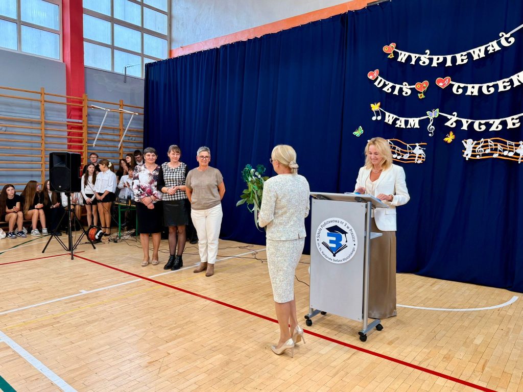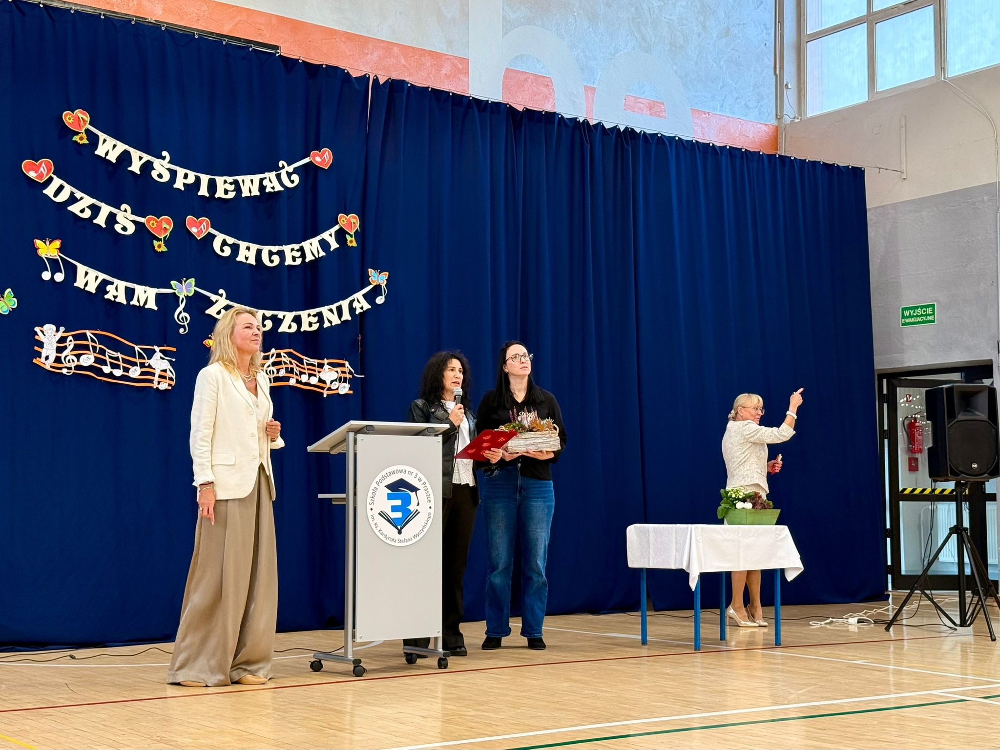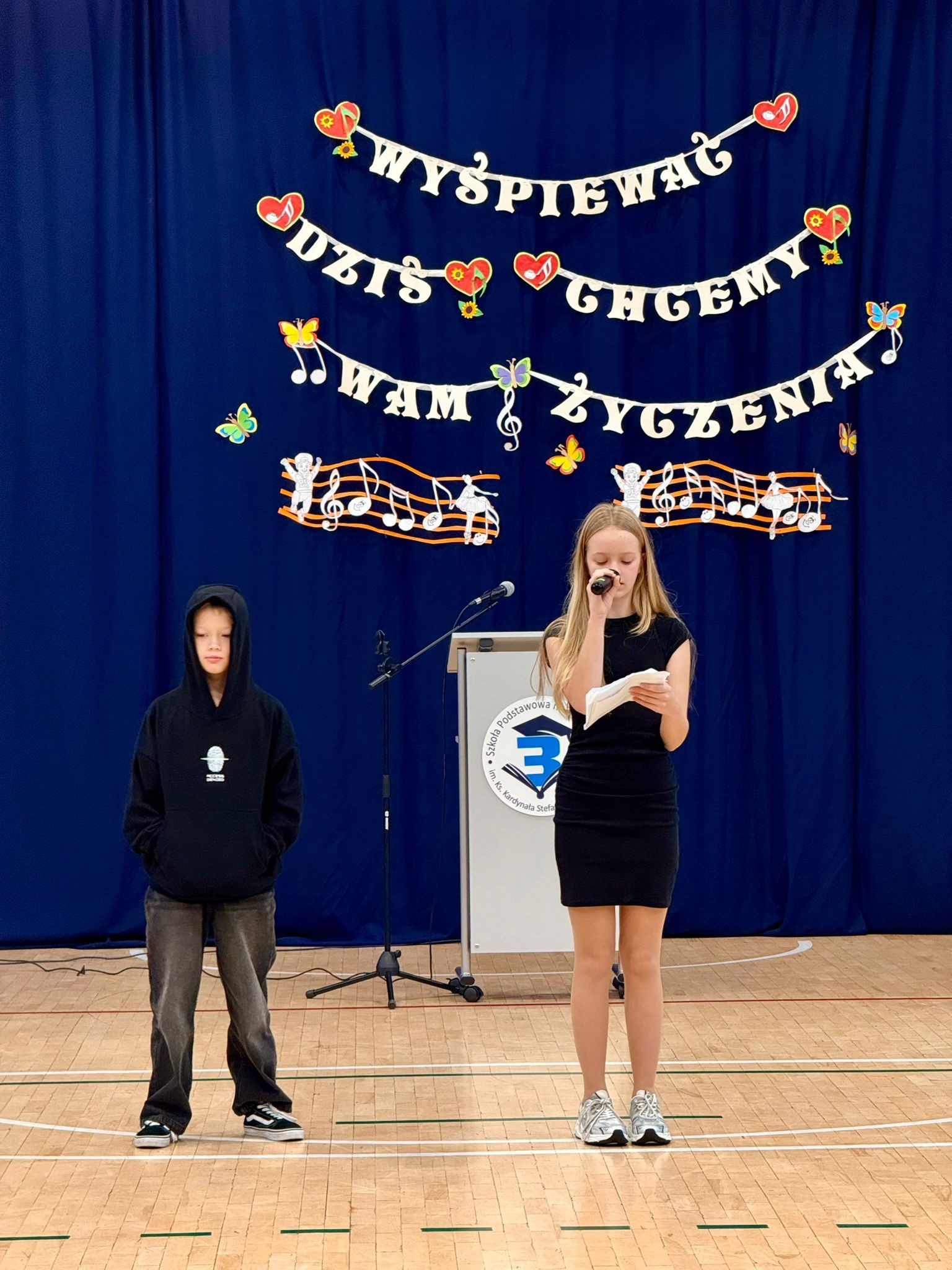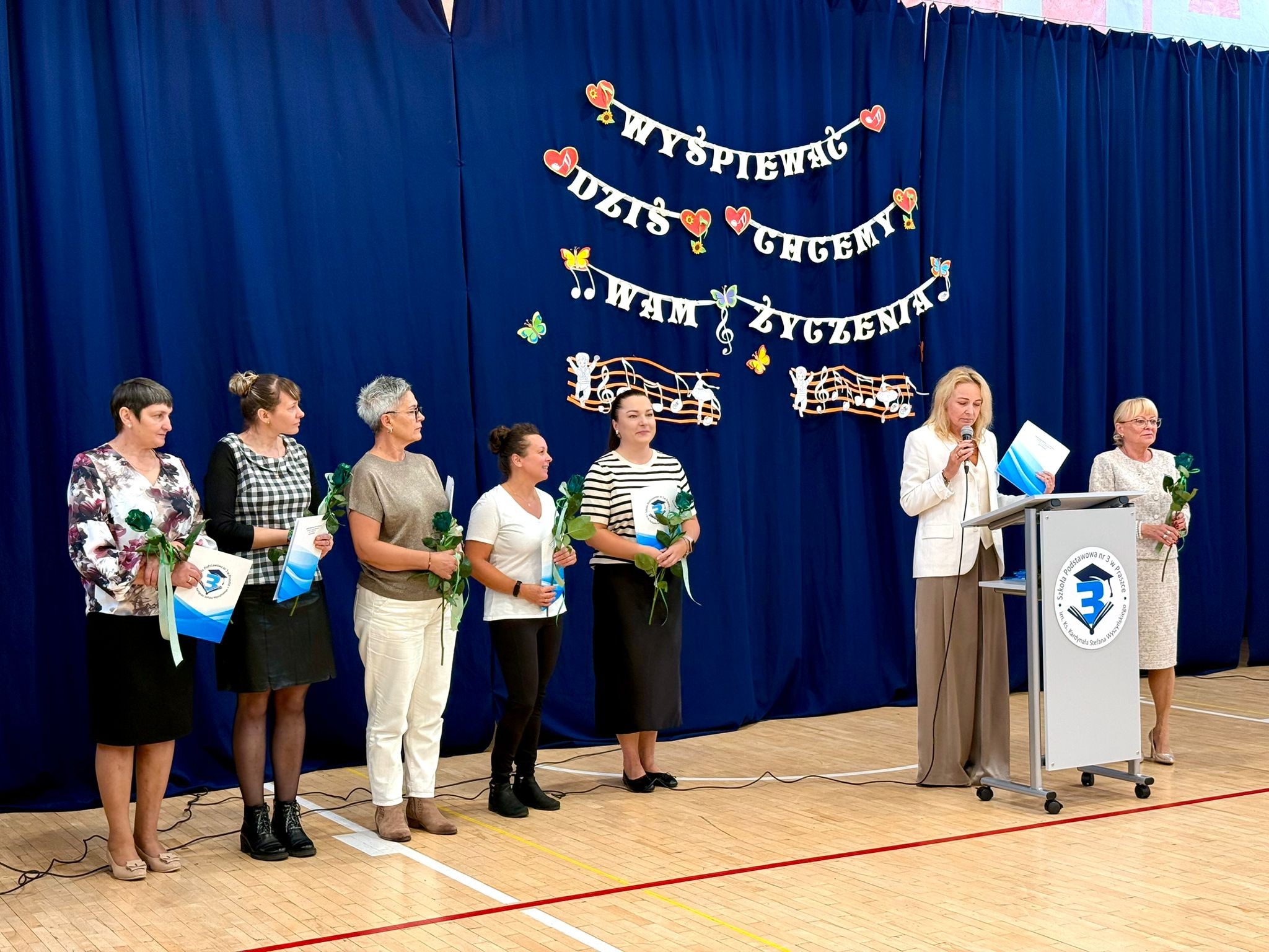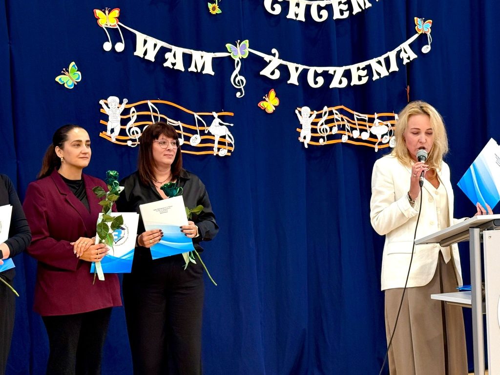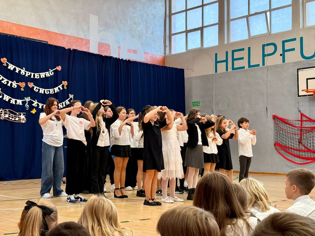 Był to moment, aby podziękować nauczycielom za ich codzienny trud, cierpliwość i serce wkładane w nauczanie oraz wychowanie młodego pokolenia. Uczniowie wyrazili swoją wdzięczność także w symboliczny sposób — wręczając nauczycielom słodkości i kwiaty.