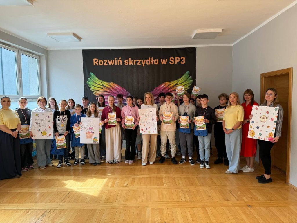 W ramach kilkuletniej współpracy między nauczycielami i uczniami ze szkół podstawowych powiatu oleskiego dziś w naszej szkole miało miejsce niezwykłe wydarzenie! Nasze anglistki zorganizowały lekcję otwartą – Easter Egg Hunt – Gold Edition!
