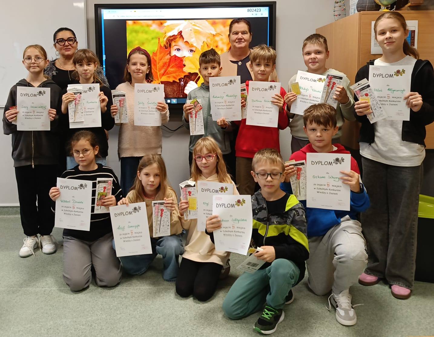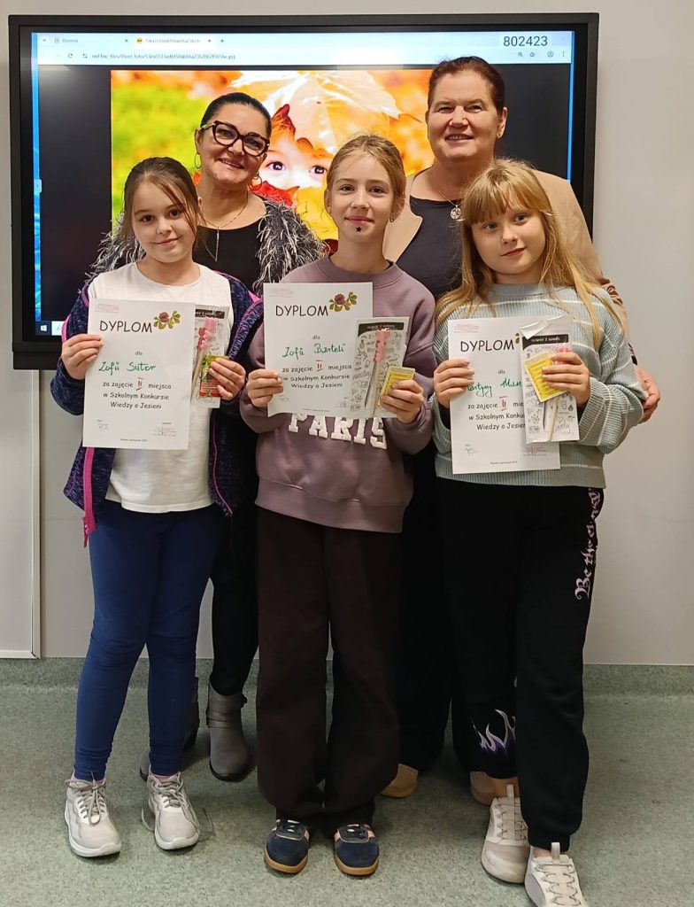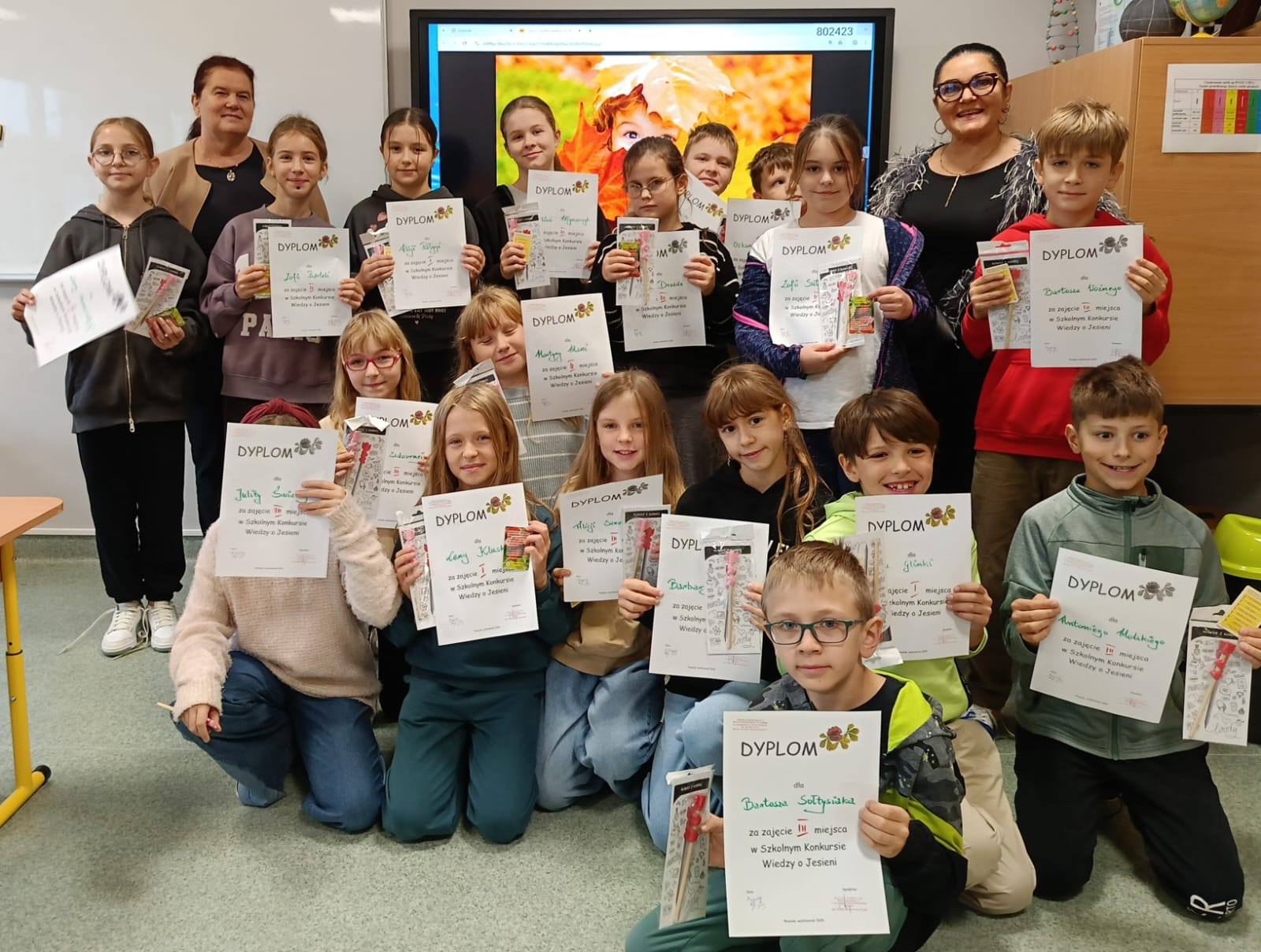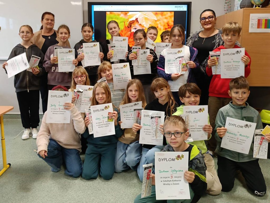 12 października, 2025in Bez kategoriiby admin I Szkolny Konkurs Wiedzy o Jesieni I Szkolny Konkurs Wiedzy o Jesieni odbył się 8 października. Konkurs był przeznaczony dla uczniów klas IV. Wszyscy uczestnicy wykazali się dużą wiedzą nt. jesieni, jednak jury musiało dokonać oceny. Wyłoniono aż 19 laureatów z obu klas Wszystkim uczniom SERDECZNIE GRATULUJEMY!!!