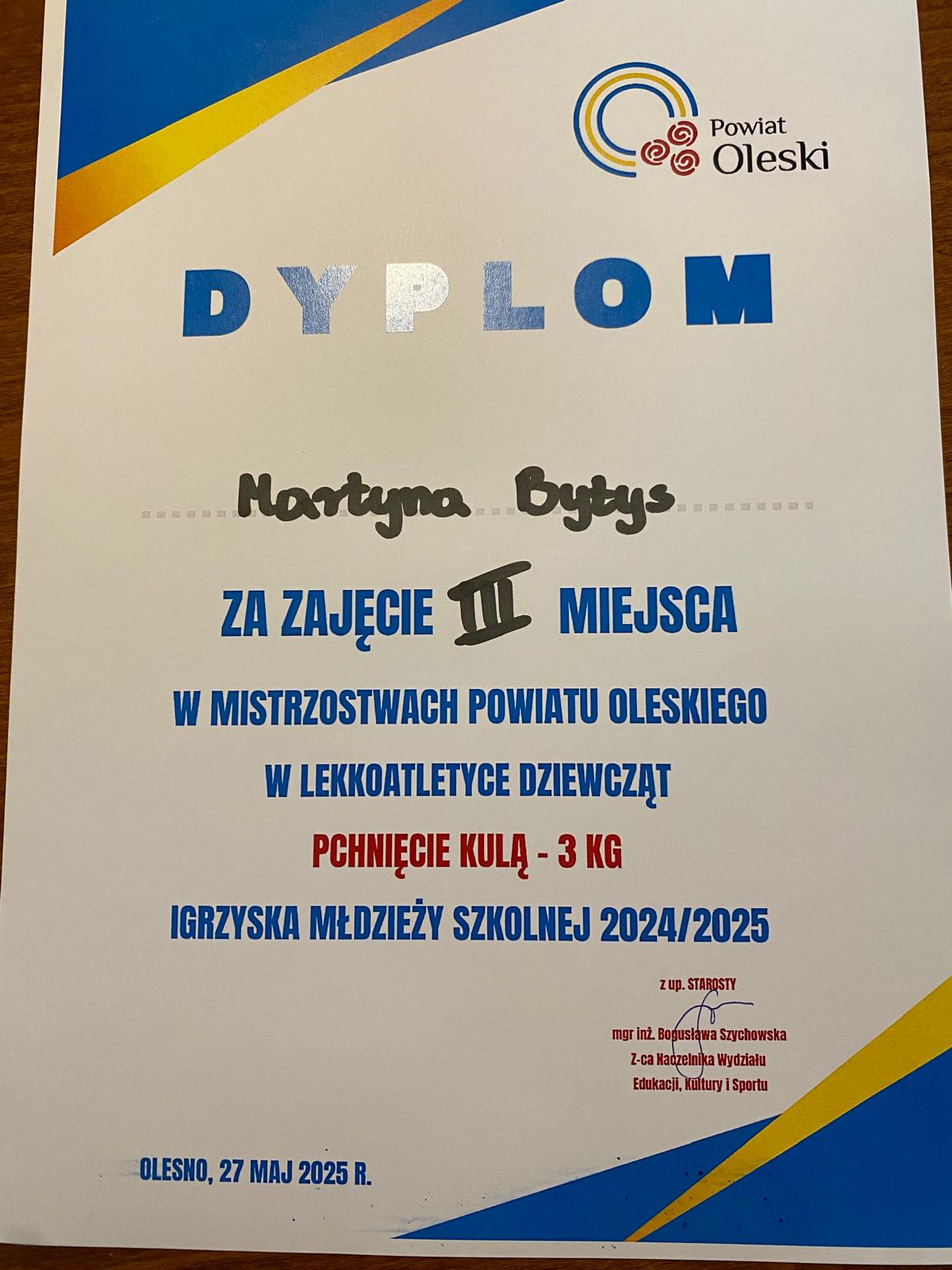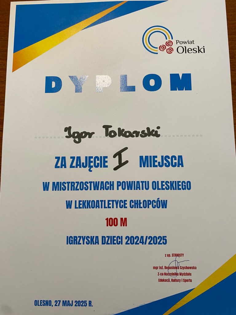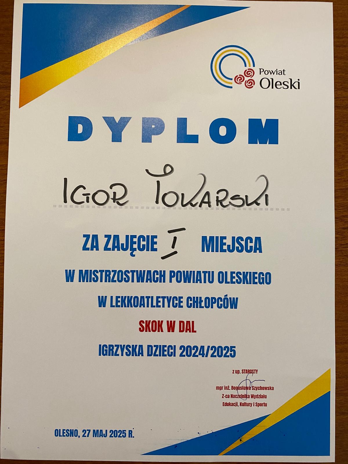 17.05.2025 uczniowie SP3 wzięli udział w Indywidualnych Mistrzostwach Powiatu Oleskiego zdobywając następujące miejsca medalowe w kategorii Igrzyska Dzieci: