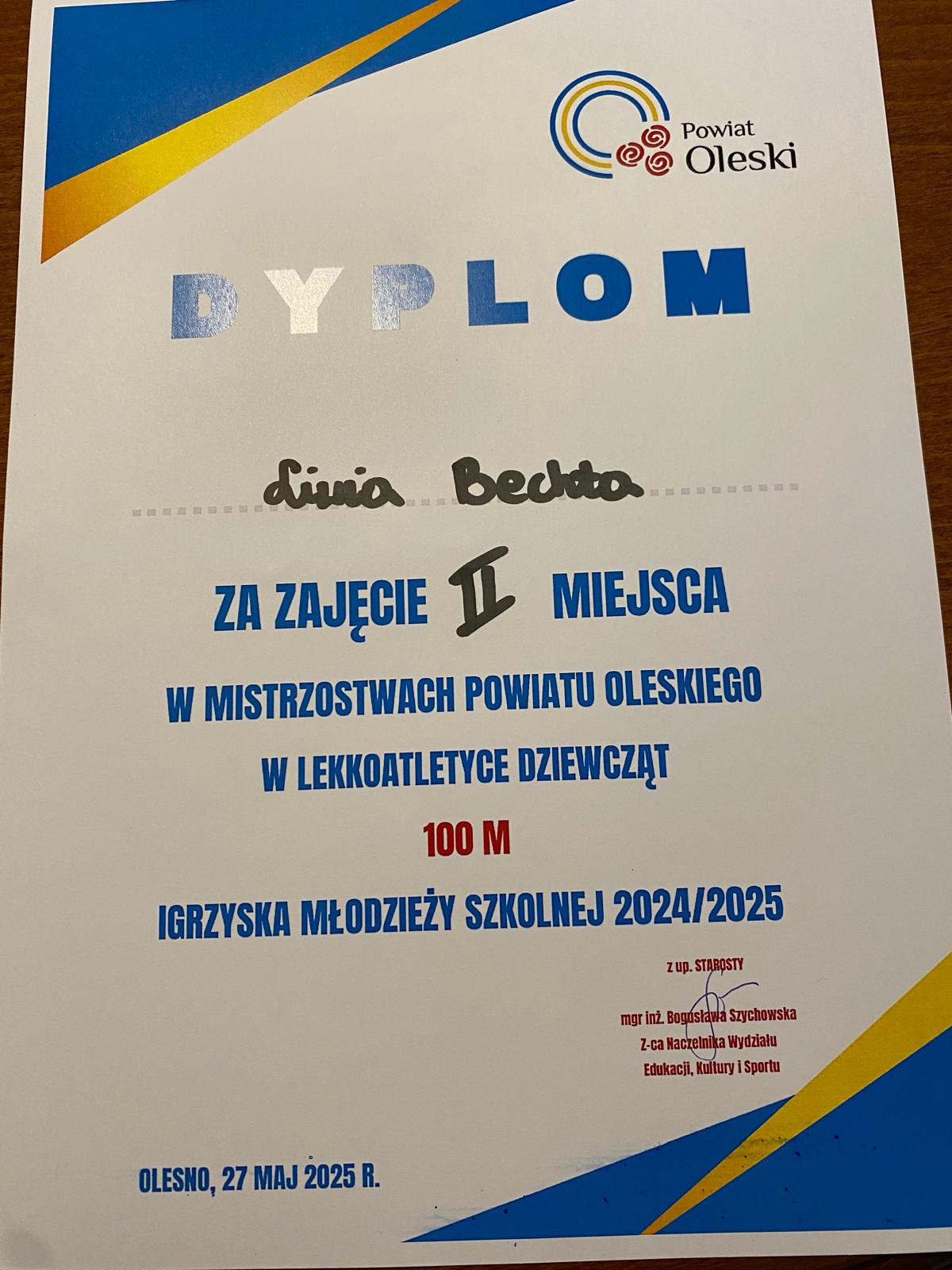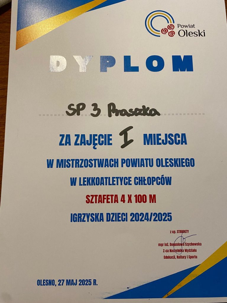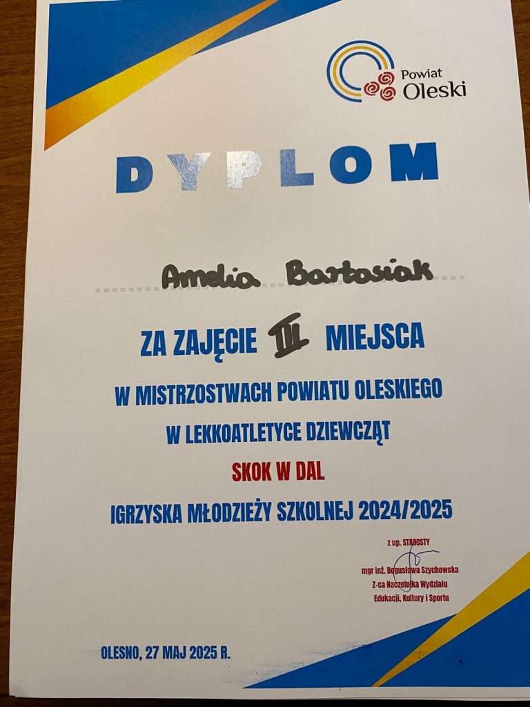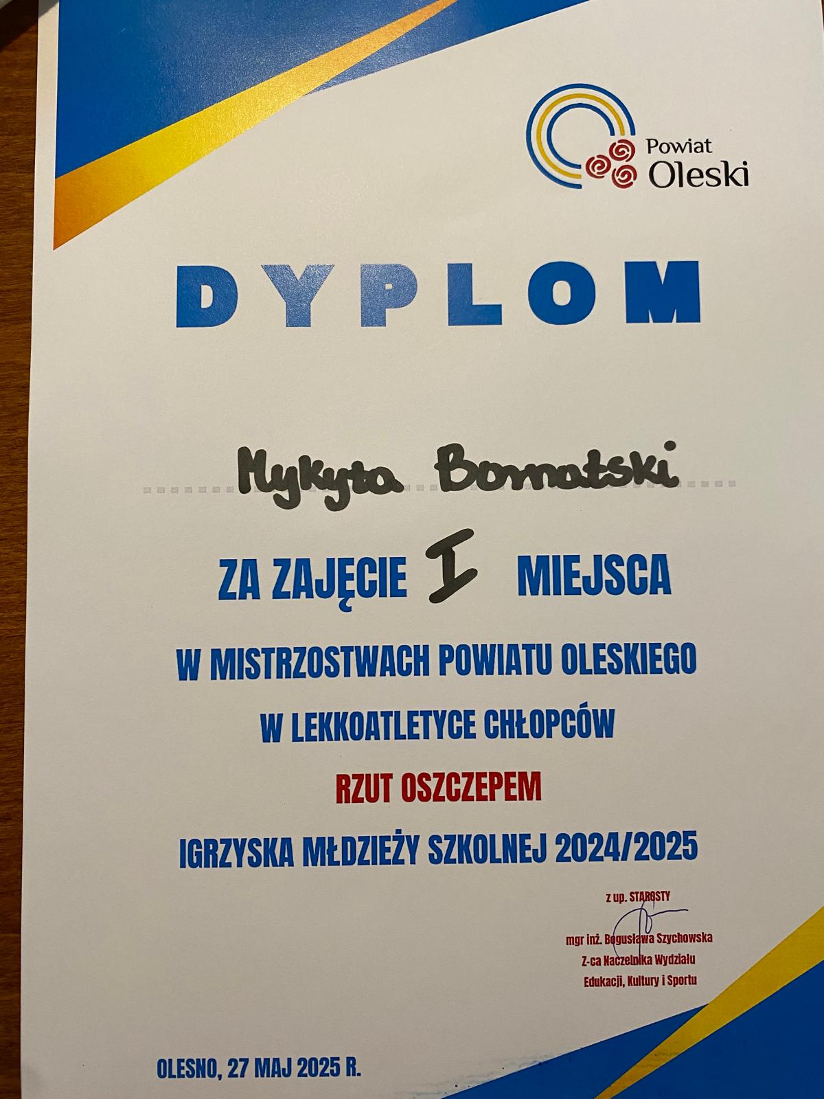 17.05.2025 uczniowie SP3 wzięli udział w Indywidualnych Mistrzostwach Powiatu Oleskiego zdobywając następujące miejsca medalowe w kategorii Igrzyska Dzieci:
