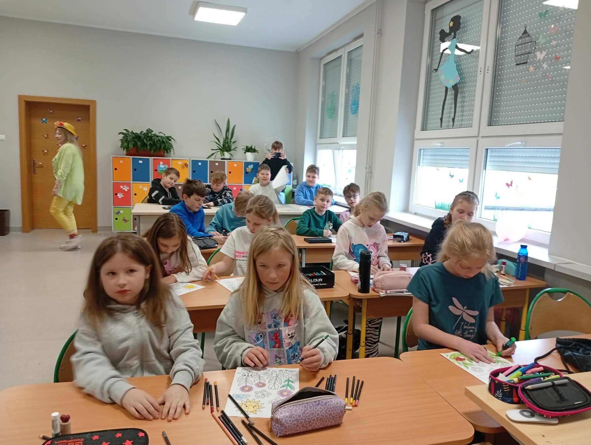 🎨Klasy 1-3 wykonały plakaty Pani Wiosny, co było okazją do integracji klas🫟