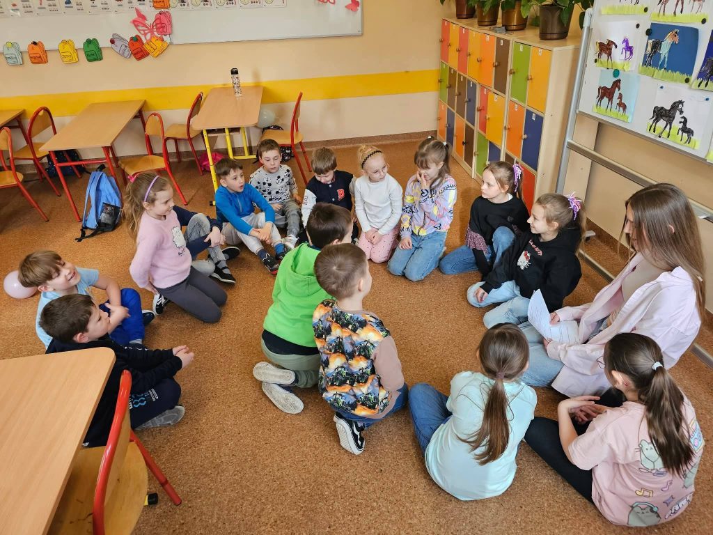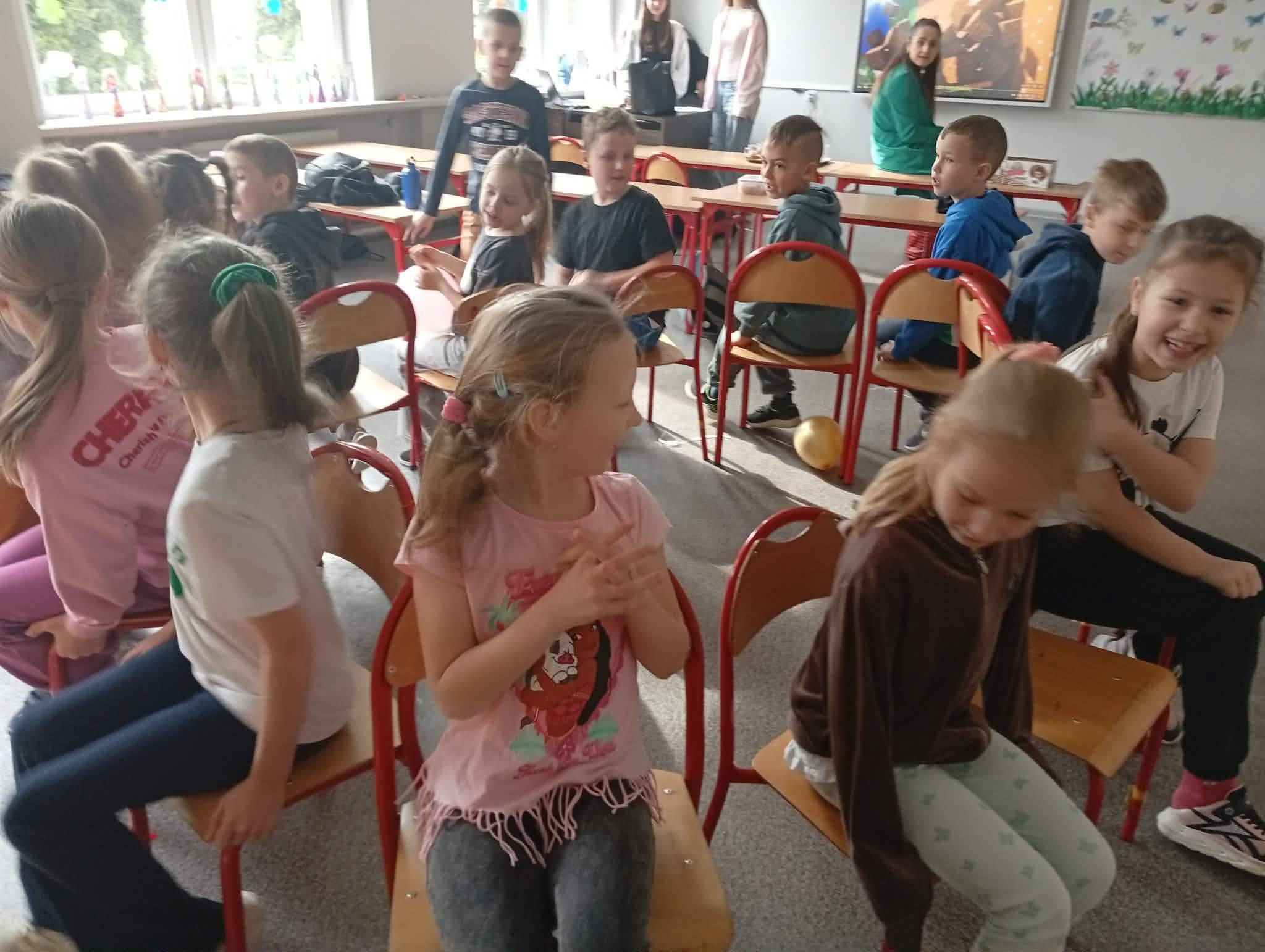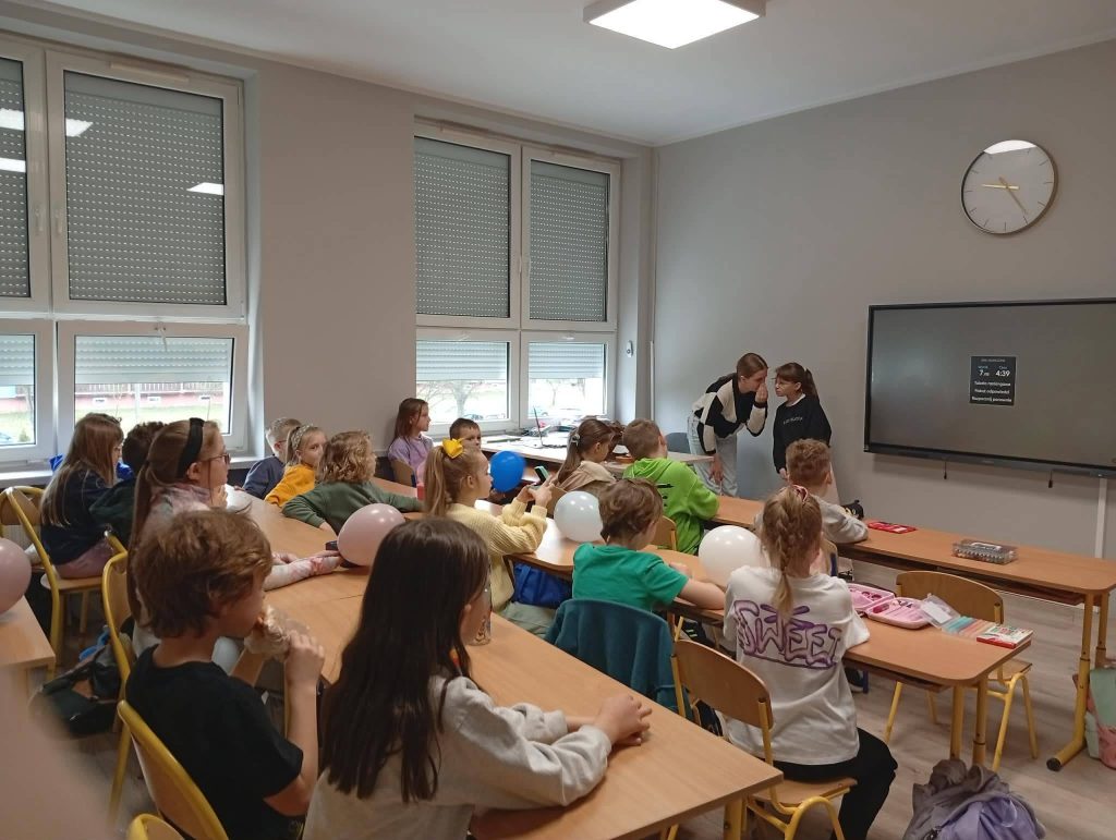 📕📚A na koniec nasze uczennice przeprowadziły zajęcia w klasach młodszych 😊– radość uczniów widać na zdjęciach