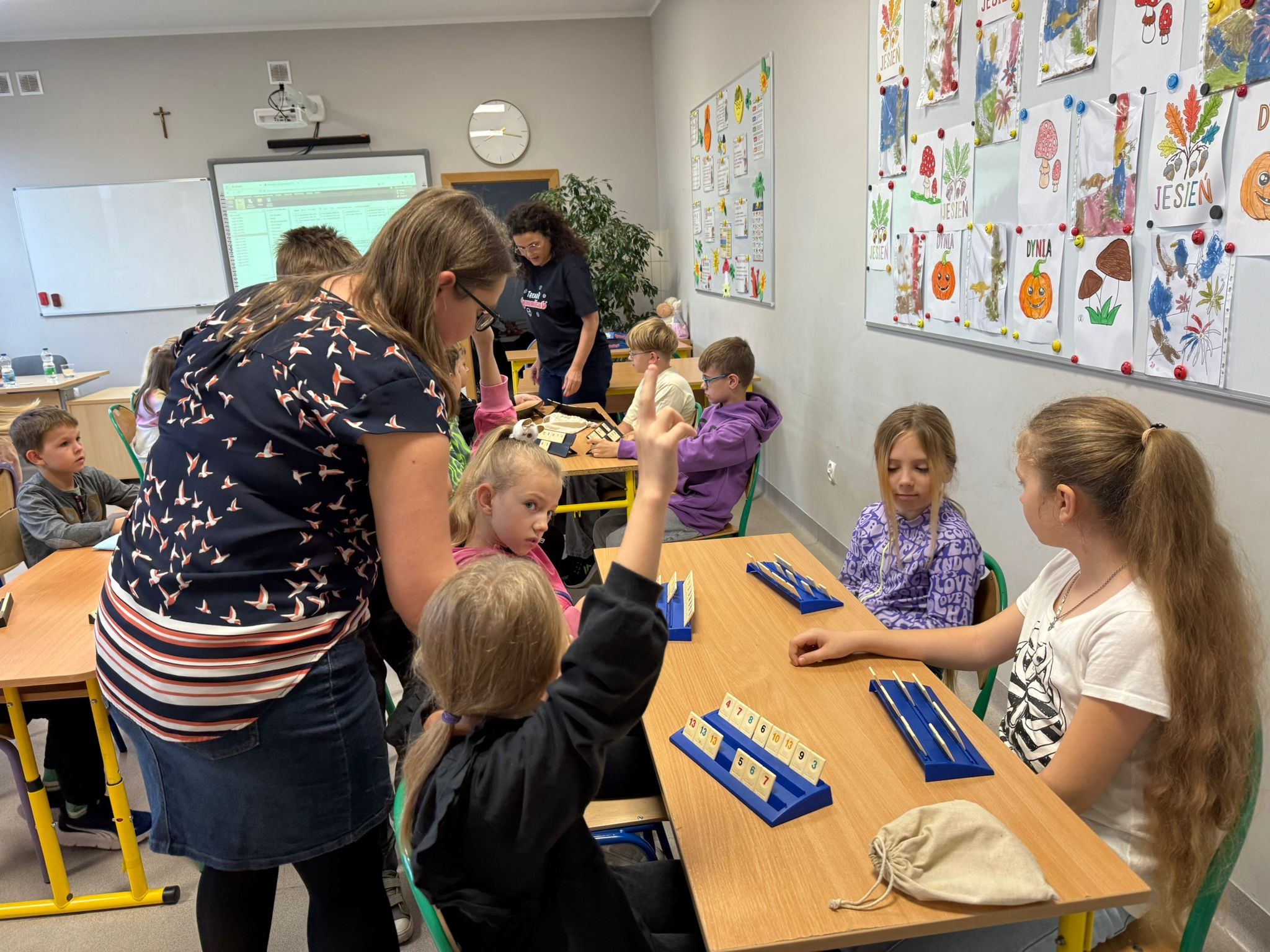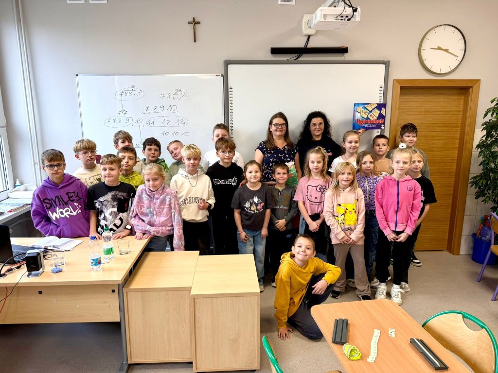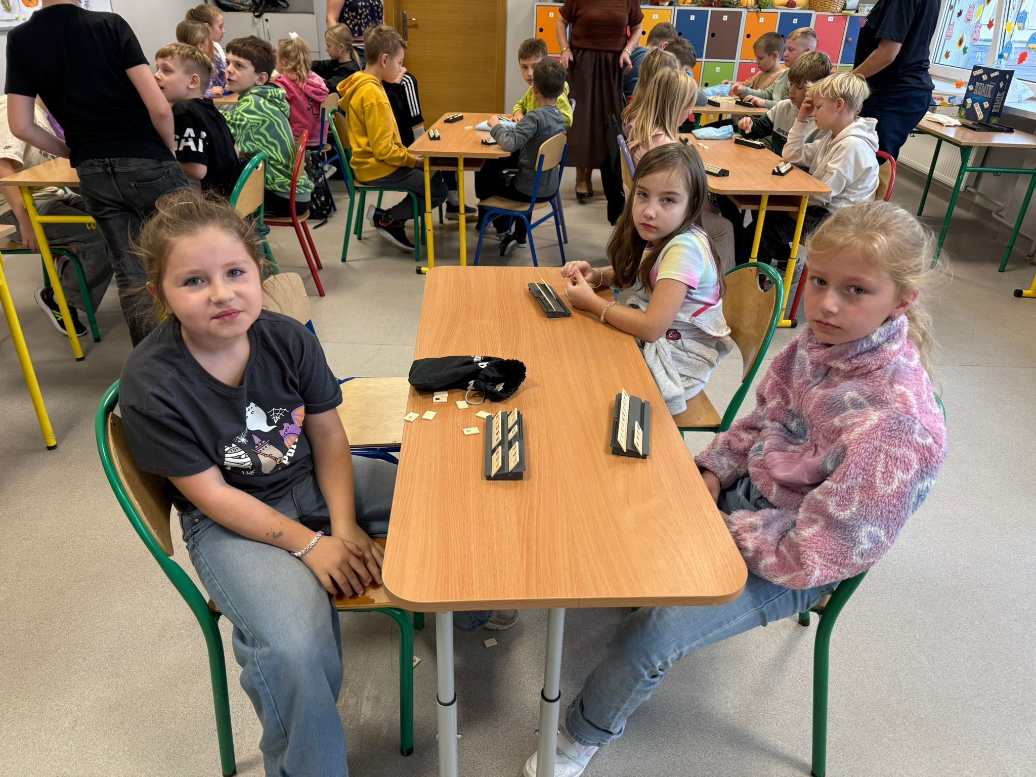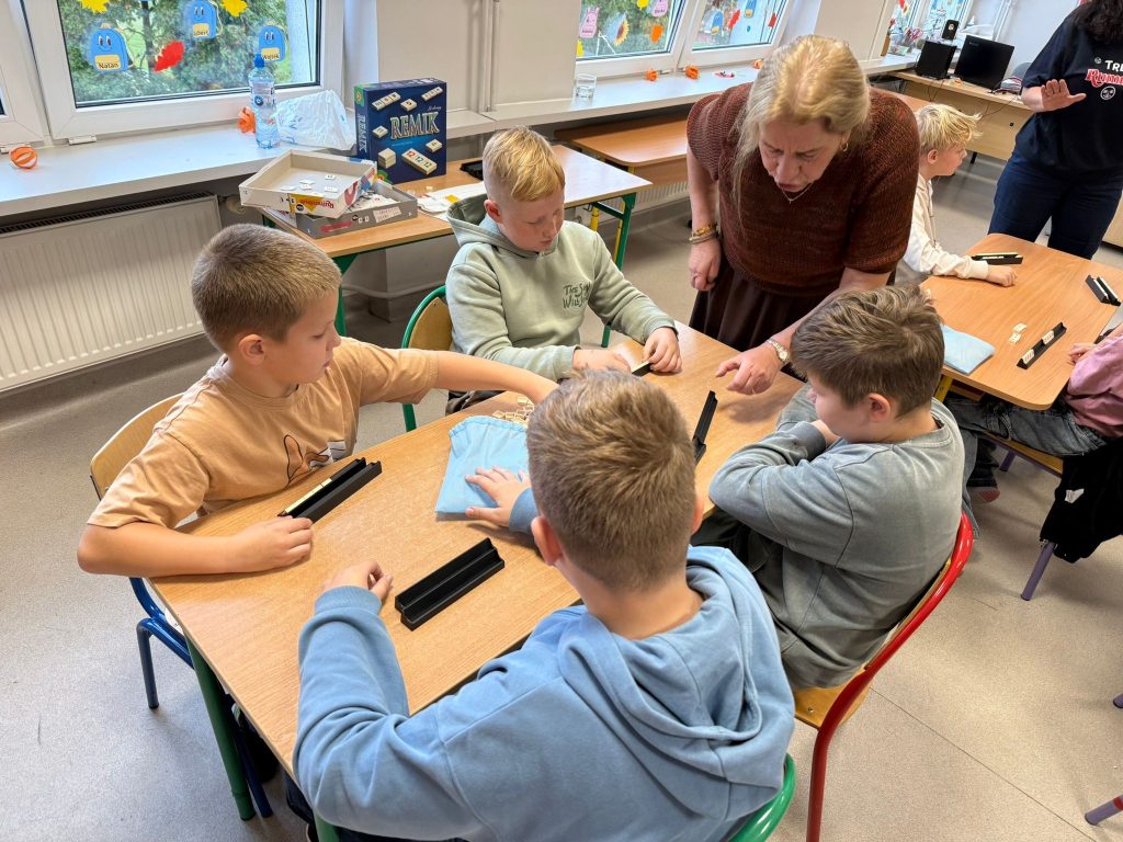 Dziś w klasie 3B poznaliśmy zasady gry Rummikub. Dzięki inicjatywie Pani Eweliny Niepiekło-Kochel – mamy Wojtka i Janka, odwiedziła nas pani Anna Poniatowska – trenerka gry Rummikub 🧩