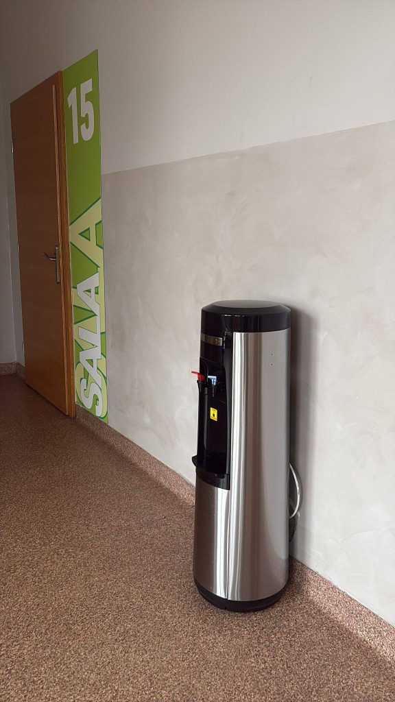 Dzięki Państwa wsparciu Rada Rodziców ufundowała trzy dystrybutory wody pitnej – po jednym na każdym piętrze szkoły. Uczniowie będą mogli swobodnie uzupełniać wodę w swoich bidonach, dbając o zdrowie, nawodnienie i dobre nawyki każdego dnia.