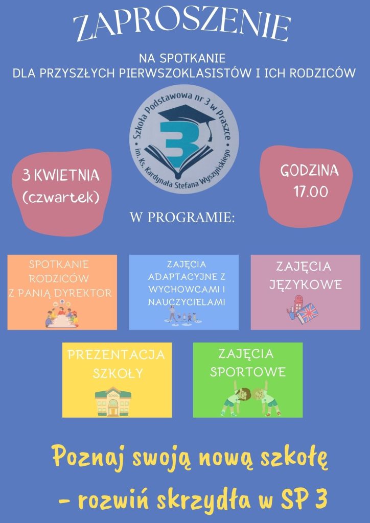 19 marca, 2025in Bez kategoriiby admin Spotkanie dla przyszłych Pierwszoklasistów i ich Rodziców ZAPRASZAMY 🙂