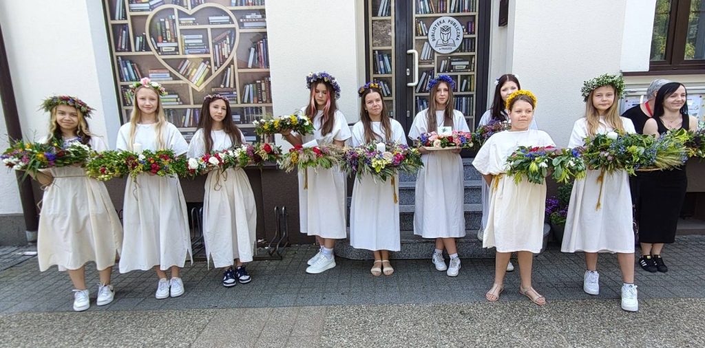 W barwnym pochodzie wzięły udział uczennice naszej szkoły Julia Pietrzykowska, Nikola Chwinda, Anna Uznańska, Natalia Wilk, Nicole Kiński, Oliwia Szkopińska, Agata Kowalczyk, Lena Kiński i Paulina Antoniewska. Dziewczęta niosły świętojańskie wianki 💐, które zostały zgłoszone do konkursu ogłoszonego przez Dom Kultury.