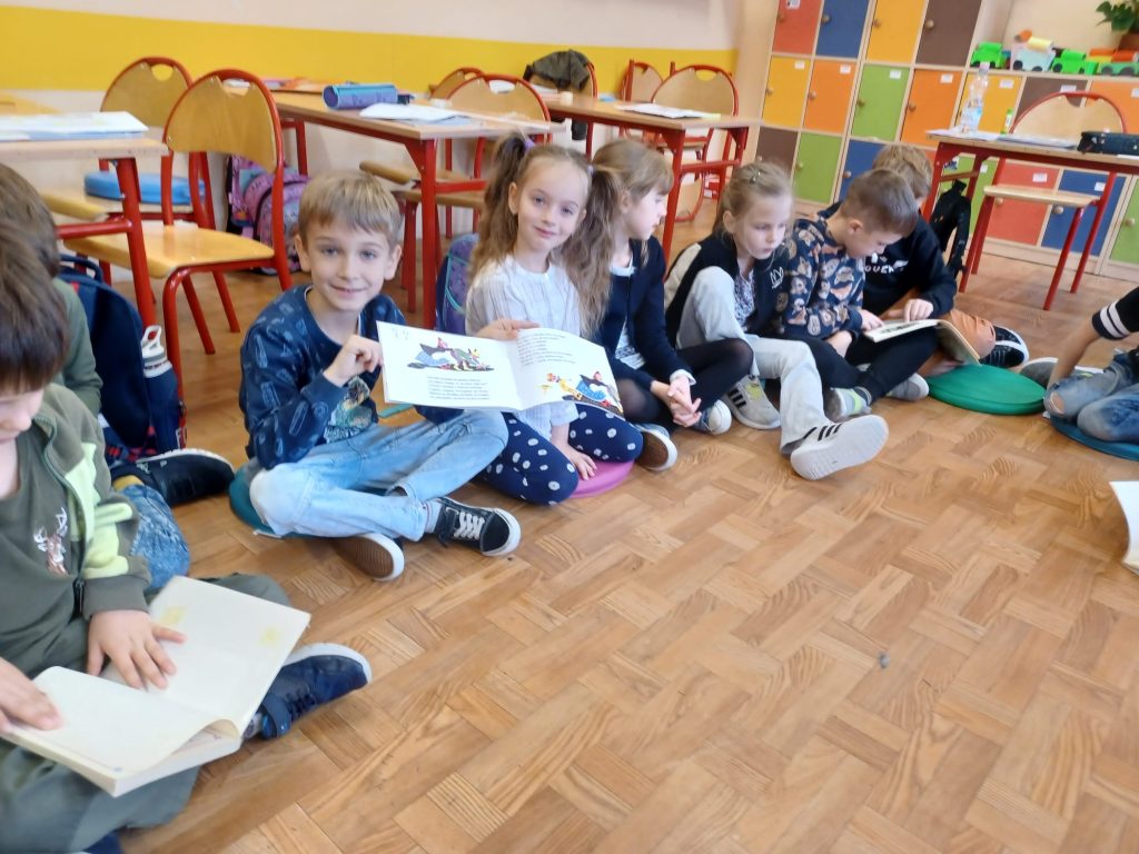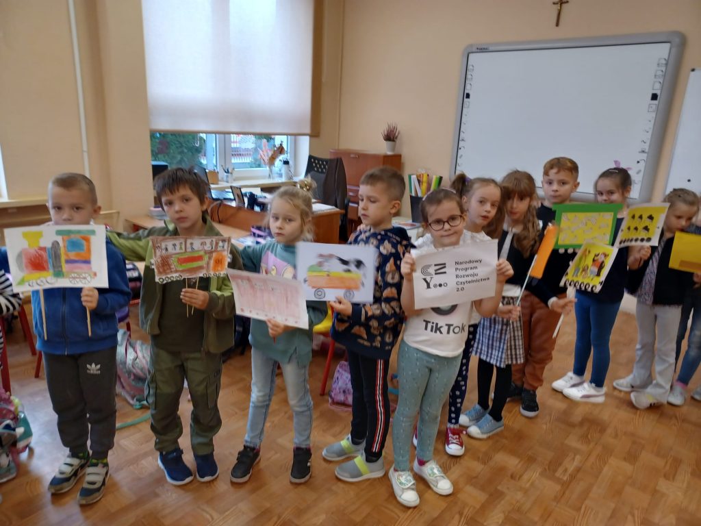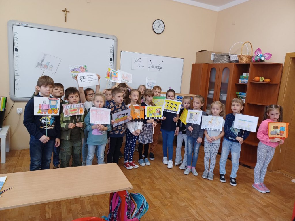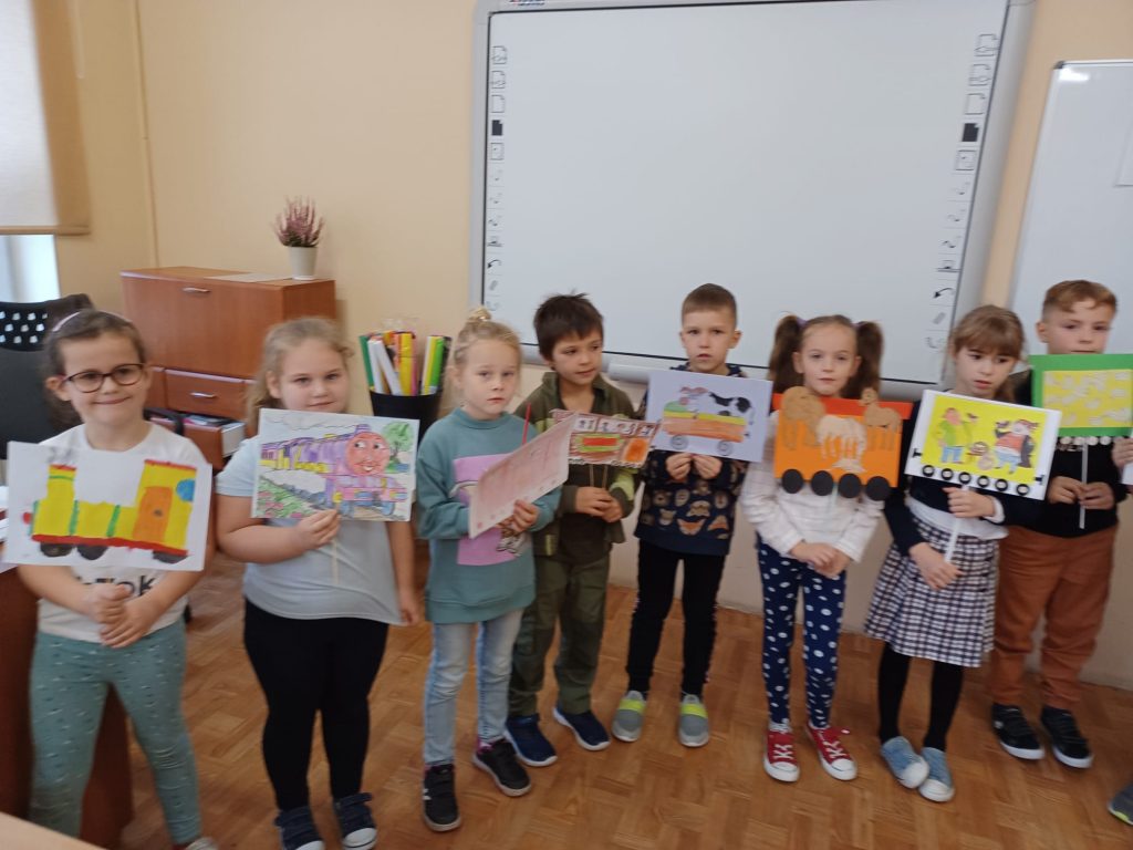 Uczniowie klasy 1B w ramach Narodowego Programu Czytelnictwa przygotowali prezentację wiersza „Lokomotywa” J. TUWIMA wykonując ciekawe, kolorowe obrazki: lokomotywy i wagoników. Wspaniale bawili się śpiewając piosenkę: „Jedzie pociag”.