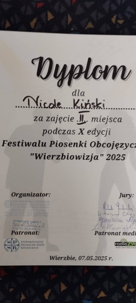 Natomiast Nicole Kiński zajęła II miejsce . Wszystkim serdecznie gratulujemy.
