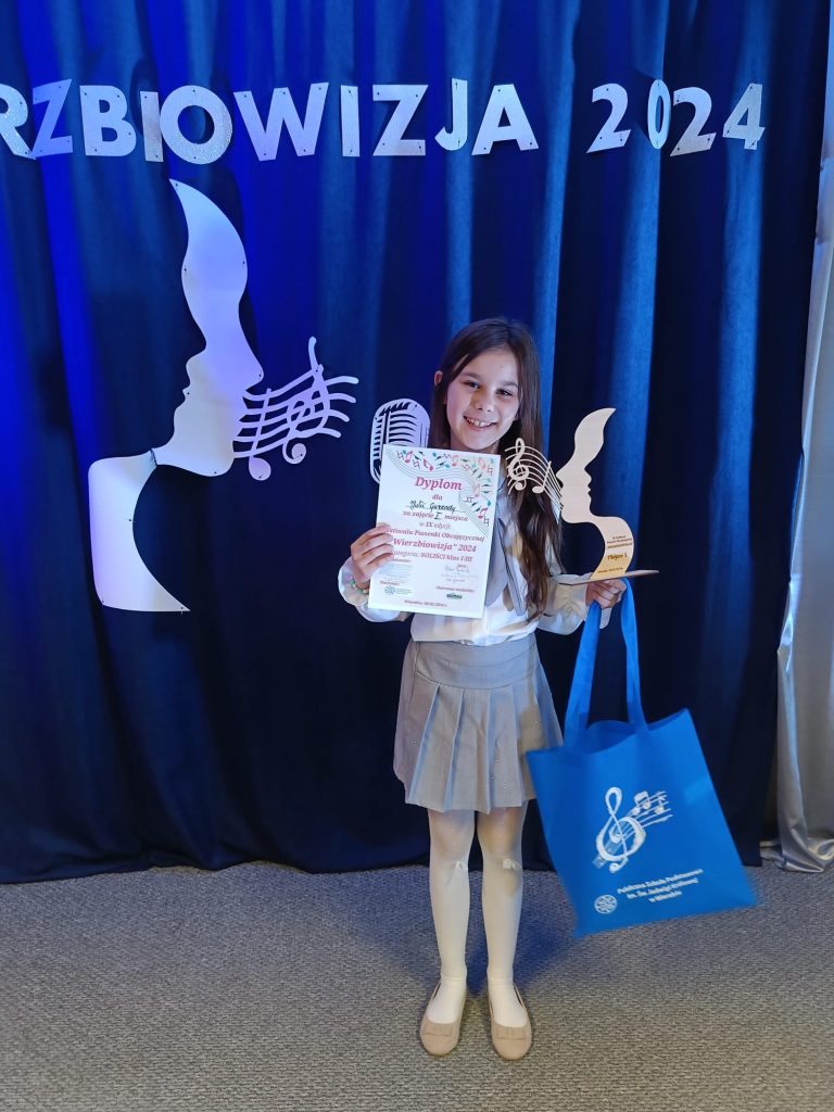 10 maja, 2024in Bez kategoriiby admin Wierzbowizja ’24 Dziś odbył się IX Konkurs Piosenki Obcojęzycznej Wierzbiowizja '2024 Reprezentanci naszej szkoły zdobyli w konkursie: I msc.- Julia Guzenda II msc.- zespół SING ( Lena Kiński, Nicole Kiński, Anna Uznańska, Barbara Wanowska, Aleksander Kopeć) Wyróżnienie otrzymała Liwia Jakubowska GRATULUJEMY