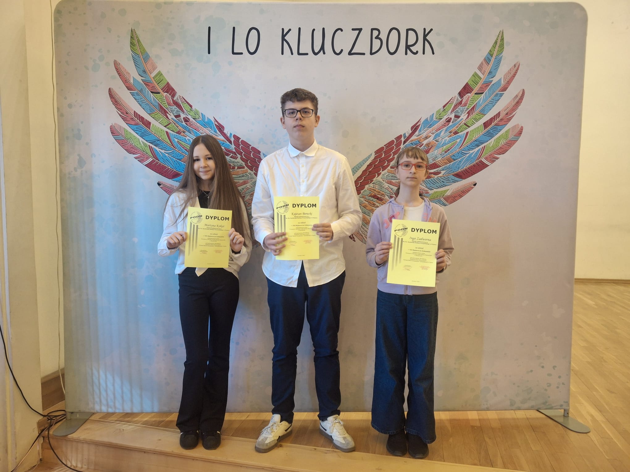 Z dumą informujemy, że uczniowie naszej szkoły: Martyna Kokot, Inga Zadworna i Kajetan Borecki dnia 30.03.2026 r. wzięli udział w XXI Rejonowym Dyktandzie w Kluczborku. Uczniowie godnie reprezentowali naszą placówkę, mierząc się z zasadami ortograficznymi języka polskiego. Udział w konkursie był nie tylko sprawdzianem umiejętności, ale także cennym doświadczeniem i okazją do rozwijania pasji do poprawnej ortografii. Serdecznie gratulujemy naszym uczniom odwagi, zaangażowania oraz pięknej postawy.