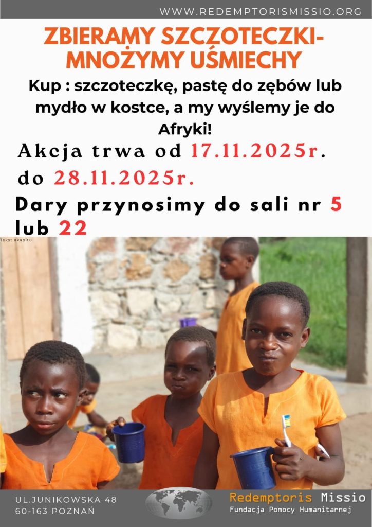 Do 28 listopada 2025 roku zbieramy szczoteczki, pasty do zębów i mydło w kostce, które zostaną przekazane podopiecznym w Afryce🪥🧼